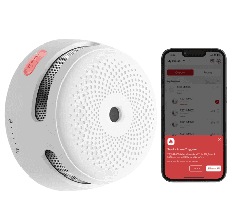 Connect the battery-operated detectors to the optional base station via 2.4 GHz Wi-Fi for real-time alerts on your phone. The app allows you to silence an alarm or test the device without touching the detector. Whether connected with or without the base station, all the alarms will sound together when one is triggered, ensuring that you can hear the alarm from anywhere on your premises.